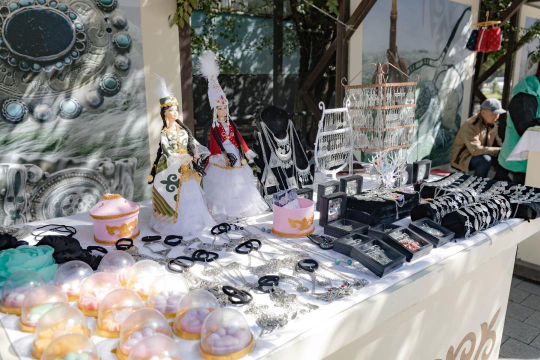 Посетителям предлагают ознакомиться с ювелирными украшениями, национальными сувенирами, войлочными изделиями, резьбой по дереву и изделиями из текстиля.