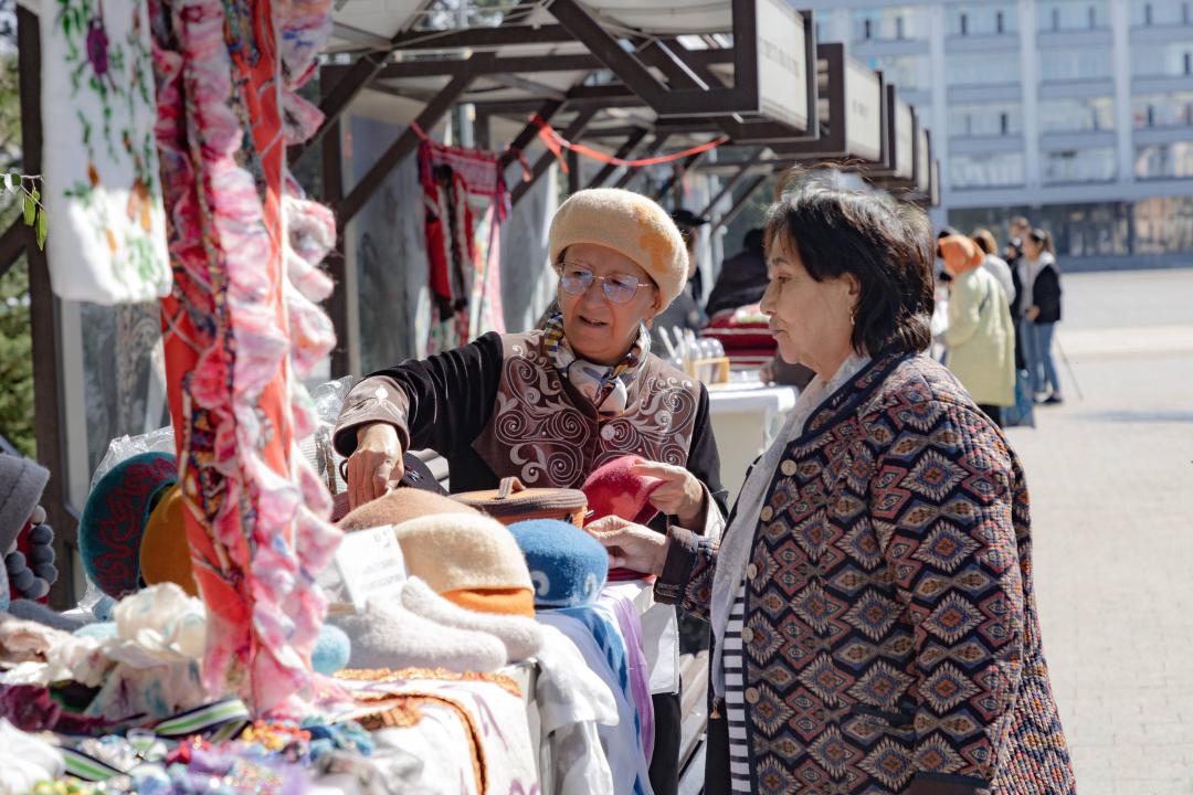 Ко Дню города на площади Арбат развернулась ярмарка мастеров, где ремесленники из Семея представляют авторские изделия ручной работы.
